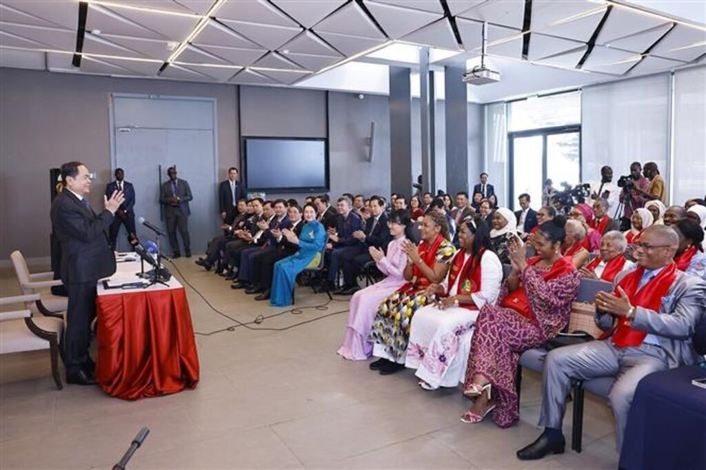 Nhân dịp này, Chủ tịch Quốc hội chuyển lời thăm hỏi của Tổng Bí thư Tô Lâm, Chủ tịch nước Lương Cường, Thủ tướng Chính phủ Phạm Minh Chính tới cộng đồng người Việt tại Senegal.