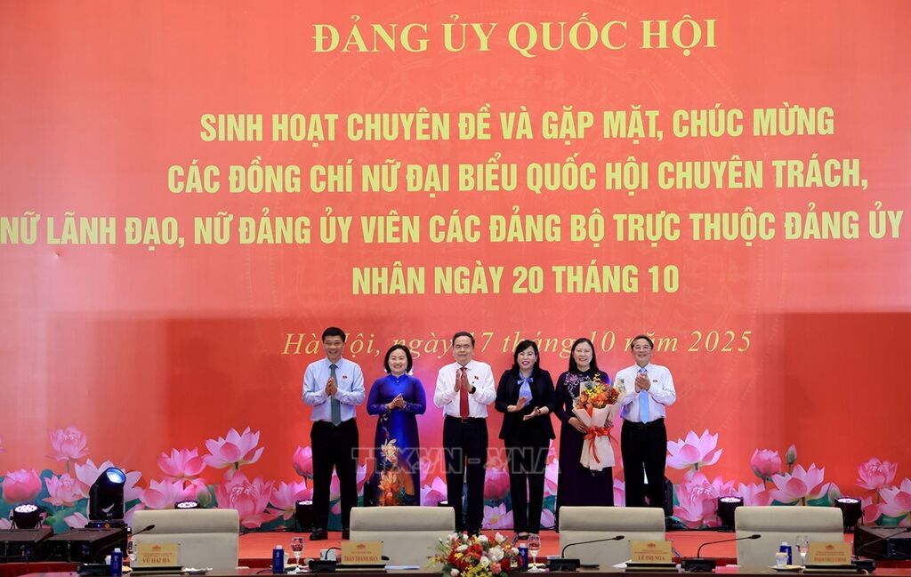 Nhân kỷ niệm 95 năm Ngày thành lập Hội Liên hiệp Phụ nữ Việt Nam (20/10/1930 - 20/10/2025), chiều 17/10, tại Nhà Quốc hội, Ủy viên Bộ Chính trị, Bí thư Đảng ủy Quốc hội, Chủ tịch Quốc hội Trần Thanh Mẫn gặp mặt, chúc mừng các nữ đại biểu Quốc hội chuyên trách, nữ lãnh đạo, nữ đảng ủy viên các Đảng bộ trực thuộc Đảng ủy Quốc hội.
