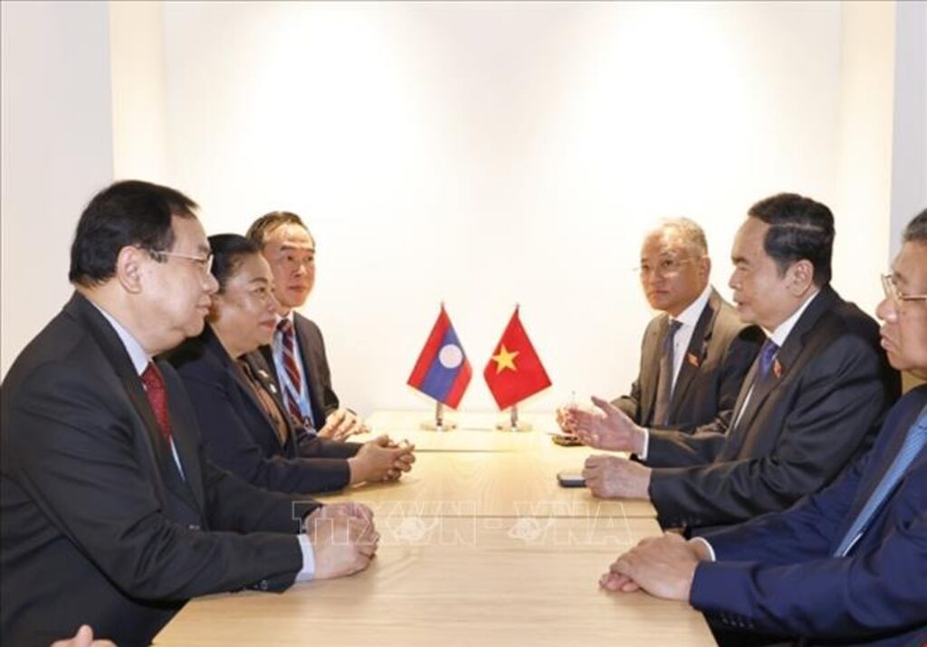 Theo đặc phái viên TTXVN, sáng 30/7 theo giờ địa phương, tại Geneva (Thụy Sĩ), nhân dịp tham dự Hội nghị các Chủ tịch Quốc hội thế giới lần thứ 6, Chủ tịch Quốc hội Trần Thanh Mẫn đã tiếp Phó Chủ tịch Quốc hội Lào Sounthone Xayachack.