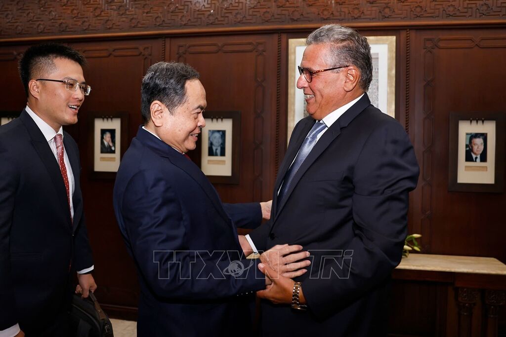 Theo đặc phái viên TTXVN, trong khuôn khổ chuyến thăm chính thức Vương quốc Maroc, sáng 25/7 theo giờ địa phương, Chủ tịch Quốc hội Trần Thanh Mẫn đã hội kiến Thủ tướng Vương quốc Maroc Aziz Akhannouch tại Văn phòng Thủ tướng.