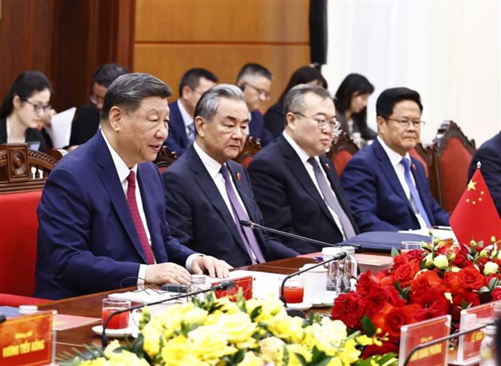Tổng Bí thư, Chủ tịch nước Trung Quốc Tập Cận Bình cho biết vừa có các cuộc hội đàm, hội kiến hiệu quả với đồng chí Tổng Bí thư Tô Lâm và Thủ tướng Chính phủ Phạm Minh Chính; bày tỏ vui mừng tận mắt chứng kiến những thành tựu to lớn mà Đảng, Nhà nước và nhân dân Việt Nam anh em đạt được trong gần 40 năm Đổi mới và cảm nhận nền móng vững chắc trong quan hệ hữu nghị giữa hai Đảng, hai nước. Tổng Bí thư, Chủ tịch nước Trung Quốc Tập Cận Bình cho rằng, cả hai nước đang bước vào giai đoạn then chốt trong sự phát triển chiến lược của mỗi nước, cần phối hợp làm sâu sắc Cộng đồng chia sẻ tương lai Trung Quốc - Việt Nam có ý nghĩa chiến lược, tiếp thêm năng lượng tích cực và ổn định cho sự phát triển của thế giới.