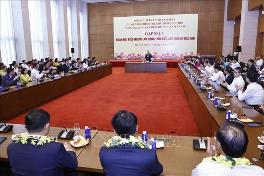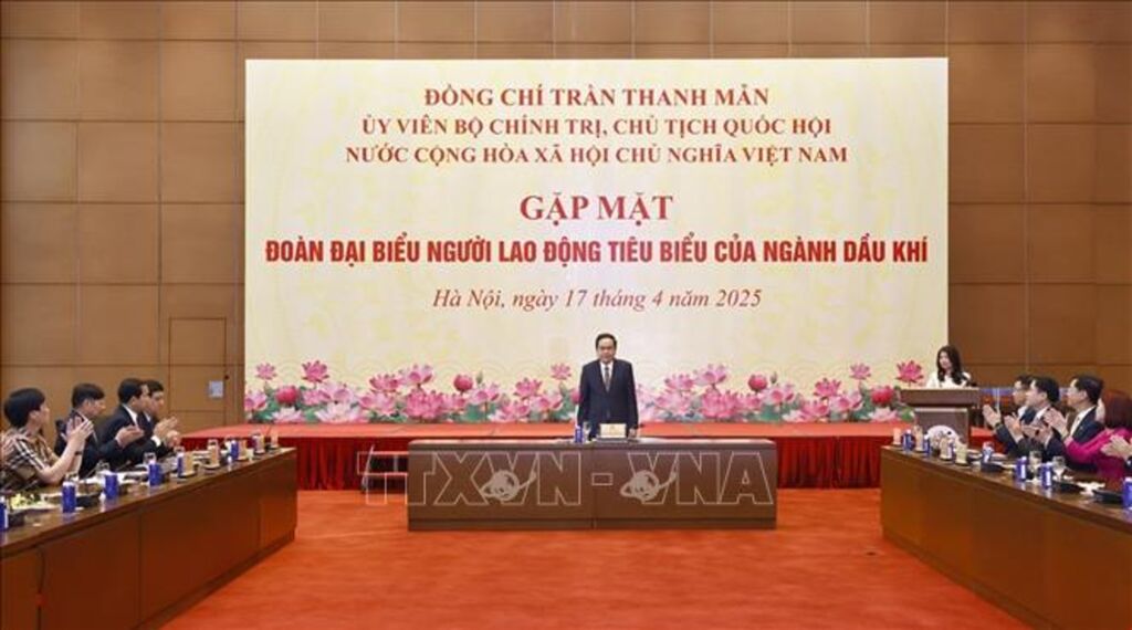Kỷ niệm 50 năm Ngày Giải phóng miền Nam thống nhất đất nước, hướng tới kỷ niệm 50 năm Ngày thành lập Tập đoàn Dầu khí Việt Nam (nay là Tập đoàn Công nghiệp - Năng lượng Quốc gia Việt Nam - Petrovietnam; 3/9/1975 - 3/9/2025), chiều 17/4, tại Nhà Quốc hội, Chủ tịch Quốc hội Trần Thanh Mẫn gặp mặt Đoàn đại biểu người lao động tiêu biểu của ngành Dầu khí.