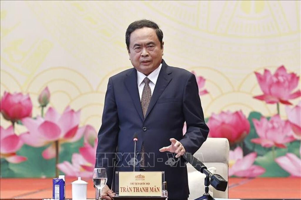 Bày tỏ vui mừng gặp các công nhân lao động tiêu biểu và lãnh đạo Tập đoàn Công nghiệp - Năng lượng Quốc gia Việt Nam, Chủ tịch Quốc hội Trần Thanh Mẫn gửi tới các đại biểu lời chúc sức khỏe và lời chào mừng nồng nhiệt nhất.