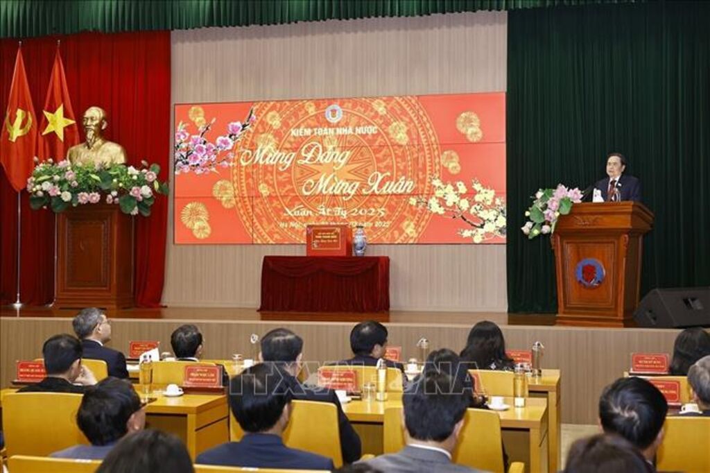 Thay mặt Ủy ban Thường vụ Quốc hội, Chủ tịch Quốc hội Trần Thanh Mẫn gửi tới các cán bộ, công chức, viên chức, người lao động của Kiểm toán Nhà nước lời chúc tốt đẹp và chào mừng nồng nhiệt nhất; bày tỏ vui mừng ngành đã nghiêm túc thực hiện Chỉ thị của Ban Bí thư về tổ chức Tết Nguyên đán Ất Tỵ, đảm bảo vui tươi, đầm ấm, tiết kiệm.