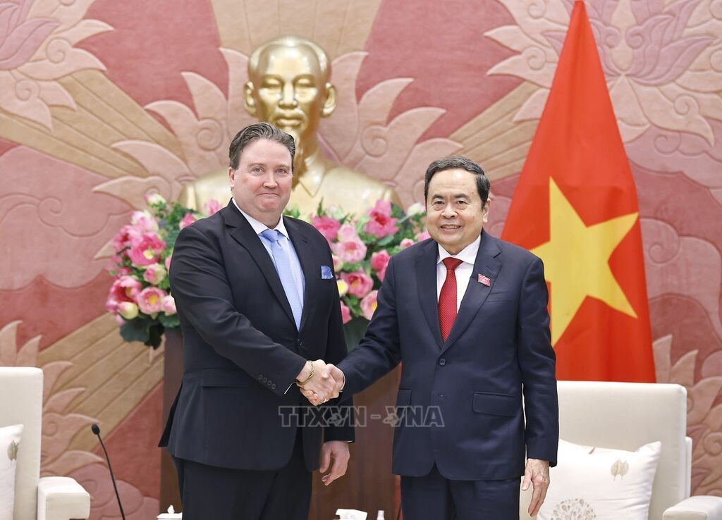 Chủ tịch Quốc hội nhất trí với đề xuất của Đại sứ Marc Knapper về việc tiếp tục tăng cường trao đổi đoàn lãnh đạo Quốc hội, các Ủy ban chuyên môn và đại biểu Quốc hội hai nước; thúc đẩy hợp tác trong các lĩnh vực ưu tiên như chuyển đổi số, đổi mới sáng tạo, khoa học - công nghệ, năng lượng sạch, ứng phó biến đổi khí hậu, giáo dục - đào tạo, y tế; đồng thời tiếp tục triển khai hiệu quả các dự án khắc phục hậu quả chiến tranh, trong đó có rà phá bom mìn, xử lý dioxin và hỗ trợ người khuyết tật. Chủ tịch Quốc hội khẳng định, Quốc hội Việt Nam sẵn sàng phối hợp chặt chẽ với Quốc hội Hoa Kỳ nhằm hoàn thiện khuôn khổ pháp lý thuận lợi cho hợp tác song phương, tạo điều kiện để các cơ chế hợp tác giữa hai nước được triển khai hiệu quả, bền vững.