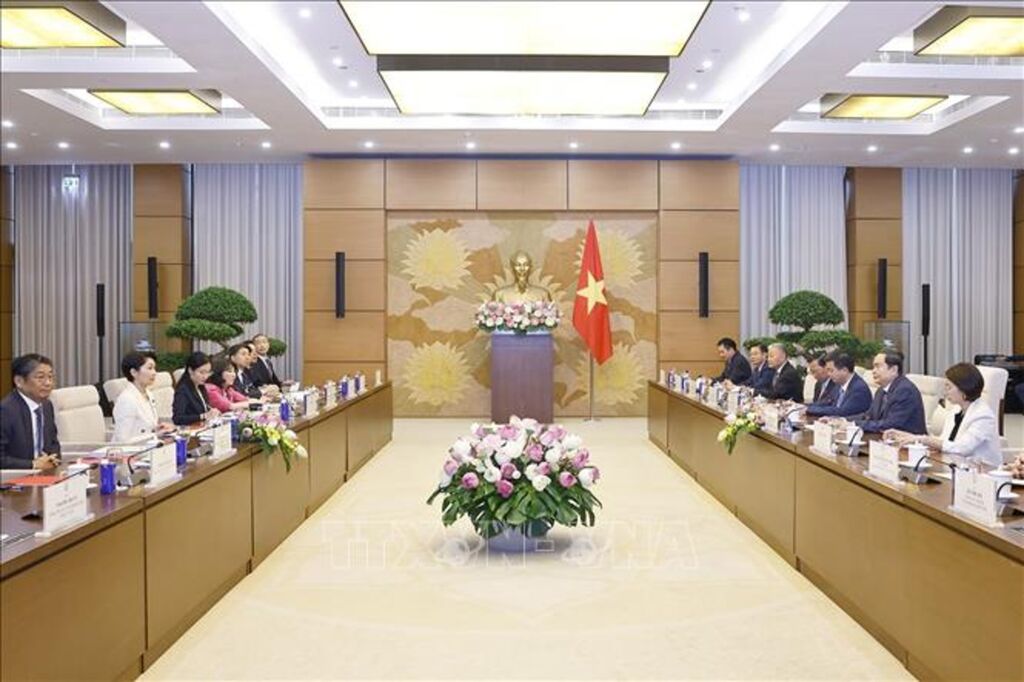 Chủ tịch Quốc hội đề nghị bà Obuchi Yuko tiếp tục quan tâm, thúc đẩy Chính phủ Nhật Bản đồng hành cùng Việt Nam thực hiện các mục tiêu phát triển, công cuộc công nghiệp hóa, hiện đại hóa...