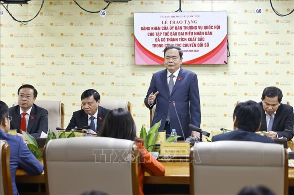 Thay mặt lãnh đạo và cán bộ, công chức, viên chức, người lao động Báo Đại biểu nhân dân, Tổng Biên tập Phạm Thị Thanh Huyền trân trọng cảm ơn Chủ tịch Quốc hội Trần Thanh Mẫn và Ủy ban Thường vụ Quốc hội, Văn phòng Quốc hội đã luôn quan tâm, chỉ đạo sát sao và dành cho Báo sự tin tưởng, động viên to lớn. Việc Ủy ban Thường vụ Quốc hội trao Bằng khen tặng Báo Đại biểu nhân dân ghi nhận những thành tích xuất sắc về chuyển đổi số không chỉ là niềm tự hào mà còn là nguồn cổ vũ mạnh mẽ để Báo tiếp tục nỗ lực hơn nữa trên chặng đường phía trước. Thời gian tới, Báo sẽ tiếp tục nâng cao chất lượng nội dung chính luận, bảo đảm tính định hướng, tính chiến đấu và tính thuyết phục, đưa hơi thở nghị trường, các quyết sách của Quốc hội đến gần hơn với cử tri, nhân dân bằng những hình thức thể hiện hiện đại, sinh động. Báo tiếp tục đẩy mạnh chuyển đổi số toàn diện trong hoạt động báo chí và quản trị nội bộ, làm chủ công nghệ, phát triển sản phẩm đa nền tảng, đa phương tiện, xây dựng sản phẩm số, xây dựng đội ngũ nhà báo có tư duy số đáp ứng yêu cầu báo chí trong kỷ nguyên số./.