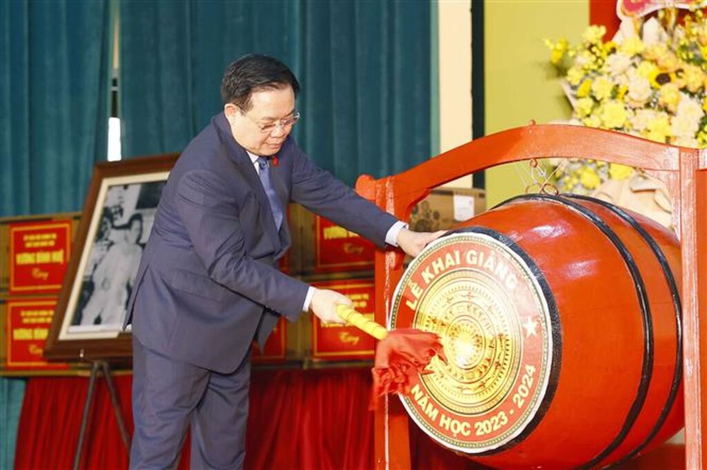 Chủ tịch Quốc hội Vương Đình Huệ dự khai giảng năm học mới tại Trường Hữu Nghị T78