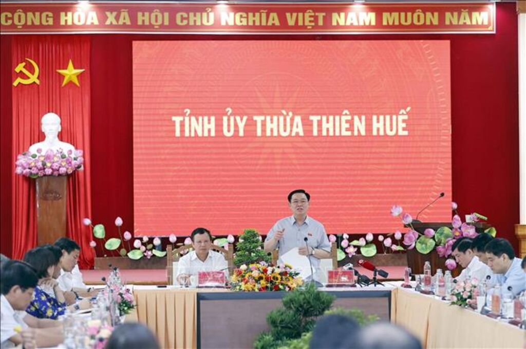 Phát biểu tại cuộc làm việc, Chủ tịch Quốc hội Vương Đình Huệ chuyển lời thăm hỏi của Tổng Bí thư Nguyễn Phú Trọng tới Đảng bộ, chính quyền và nhân dân tỉnh Thừa Thiên Huế; biểu dương, đánh giá cao những kết quả, thành tích mà Đảng bộ, chính quyền và nhân dân tỉnh Thừa Thiên Huế đã đạt được trong thời gian qua.