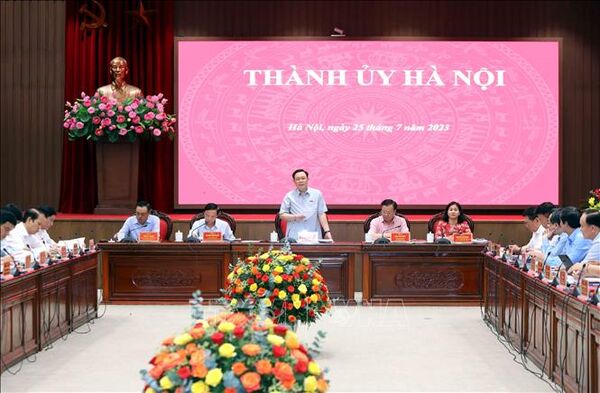 TTXVN - Ngày 26/7, tại buổi làm việc của Thường trực Thành ủy Hà Nội với Huyện ủy Chương Mỹ về nhiệm vụ trọng tâm trong thời gian tới, Ủy viên Bộ Chính trị, Bí thư Thành ủy, Trưởng Đoàn đại biểu Quốc hội thành phố Hà Nội Đinh Tiến Dũng bày tỏ băn khoăn về vấn đề nước sạch, tỷ lệ trường chuẩn... vẫn còn những tồn tại, hạn chế.