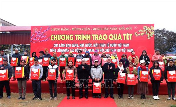 TTXVN - Chiều 16/2, tại Hà Nội, Bí thư Trung ương Đảng, Chủ tịch Ủy ban Trung ương Mặt trận Tổ quốc Việt Nam Đỗ Văn Chiến đến thăm, làm việc và chúc Tết cán bộ, viên chức, người lao động Nhà xuất bản Chính trị quốc gia Sự thật nhân dịp Tết Nguyên đán Giáp Thìn 2024.