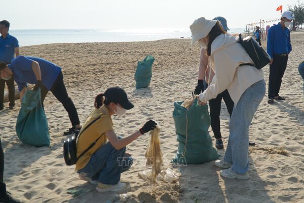 Gần 100 đoàn viên, thanh niên, tình nguyện viên và đông đảo người dân, du khách đã ra quân thu gom rác thải, làm vệ sinh gần 1 km dọc bờ biển thuộc khu phố Hàm Tiến 3, phường Mũi Né.
