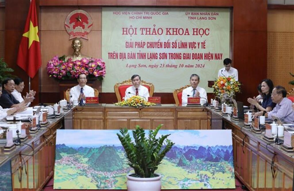 Ngày 23/10, UBND tỉnh Lạng Sơn phối hợp với Học viện Chính trị quốc gia Hồ Chí Minh tổ chức Hội thảo khoa học “Giải pháp chuyển đổi số lĩnh vực y tế trên địa bàn tỉnh Lạng Sơn trong giai đoạn hiện nay”. Hội thảo nhằm đưa ra giải pháp để nâng cao chất lượng quản lý, chăm sóc sức khỏe người dân và thực hiện nghiên cứu, tư vấn chính sách về chuyển đổi số lĩnh vực y tế...