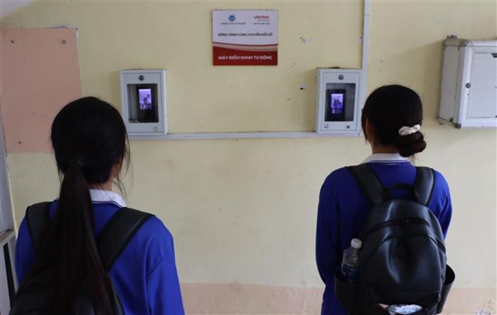 Trường đã triển khai lắp đặt hệ thống điểm danh tự động bằng nhận diện khuôn mặt, góp phần nâng cao hiệu quả quản lý và mang lại trải nghiệm học tập hiện đại cho học sinh. “Ưu điểm lớn của hệ thống nhận diện khuôn mặt là dữ liệu được đồng bộ với ứng dụng trên điện thoại phụ huynh. Chỉ thời gian ngắn sau khi điểm danh, phụ huynh sẽ nhận được thông báo xác nhận con đã đến trường. Nếu khung giờ con bắt đầu vào lớp mà không thấy báo, phụ huynh sẽ điện vào đường dây nóng hoặc cho Ban Giám hiệu để hỏi, kiểm tra” - Hiệu trưởng Trường Trung học Phổ thông Võ Văn Kiệt chia sẻ.