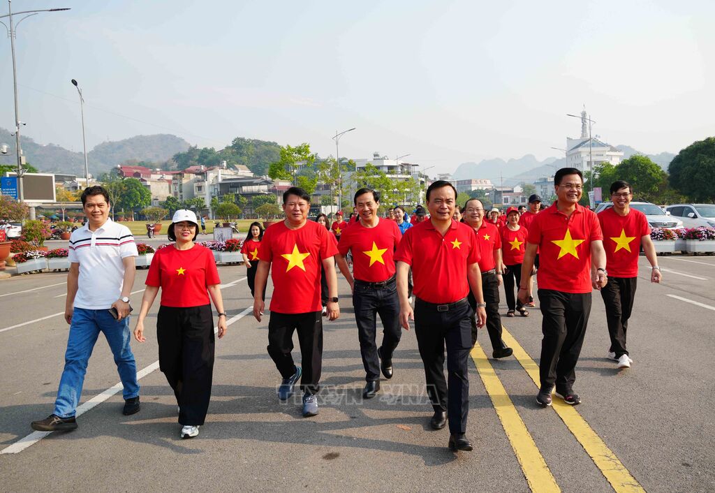 Ngay sau lễ mít tinh, lãnh đạo tỉnh Sơn La cùng các lực lượng đã tham gia diễu hành đi bộ xung quanh Quảng trường Tây Bắc, hưởng ứng Ngày Sức khỏe toàn dân.