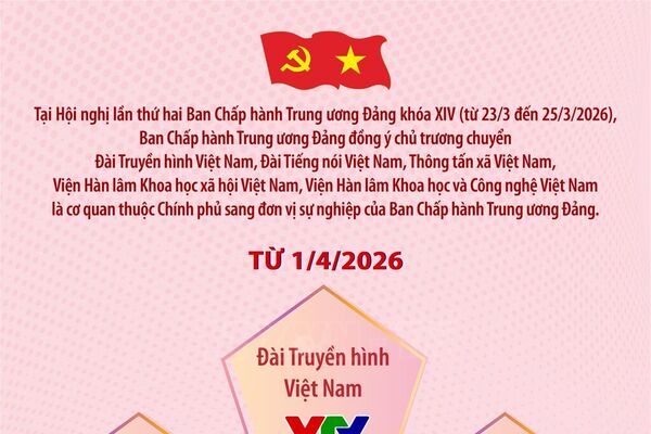 Từ ngày 01/4/2026, các cơ quan báo chí chủ lực gồm Đài Tiếng nói Việt Nam (VOV), Đài Truyền hình Việt Nam (VTV), Thông tấn xã Việt Nam (TTXVN) chuyển từ cơ quan thuộc Chính phủ sang là đơn vị sự nghiệp của Ban Chấp hành Trung ương Đảng. Nhân dịp này, đồng chí Vũ Việt Trang, Bí thư Đảng uỷ, Tổng giám đốc TTXVN có bài viết “Báo chí quốc gia phát huy vai trò chủ lực dưới sự lãnh đạo trực tiếp, thường xuyên của Đảng”. -