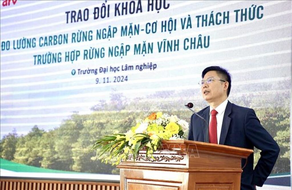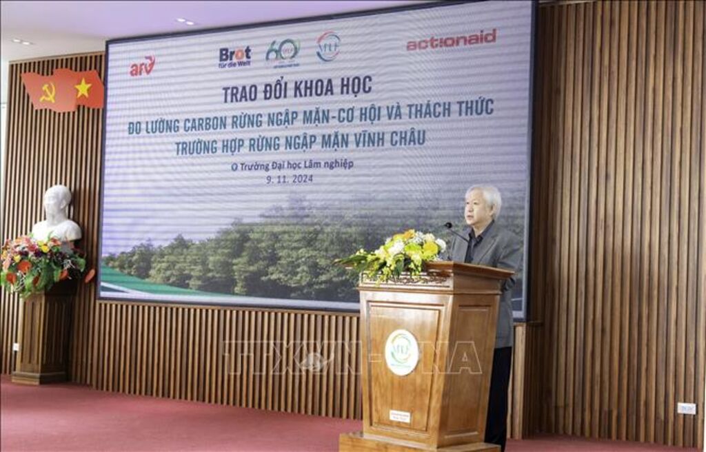 Phát biểu tại sự kiện, Giáo sư, Tiến sĩ Phạm Văn Điển, Hiệu trưởng Trường Đại học Lâm nghiệp nhấn mạnh, là trường đại học đầu ngành của cả nước về lĩnh vực lâm nghiệp, Đại học Lâm nghiệp được Nhà nước, Bộ Nông nghiệp và Phát triển nông thôn giao chủ trì, phụ trách xây dựng Sổ tay hướng dẫn kỹ thuật xác định sinh khối và trữ lượng carbon rừng ngập mặn. Đây là nhiệm vụ trọng yếu nhằm thống nhất kỹ thuật đánh giá sinh khối và lượng carbon rừng ngập mặn ở Việt Nam. Qua nghiên cứu tại Vĩnh Châu, các nhà khoa học lâm nghiệp Việt Nam có thể xây dựng được công cụ kỹ thuật cao cho ngành, mở ra cơ hội làm chủ các thảo luận và chính sách về tài chính khí hậu cấp khu vực và toàn cầu.