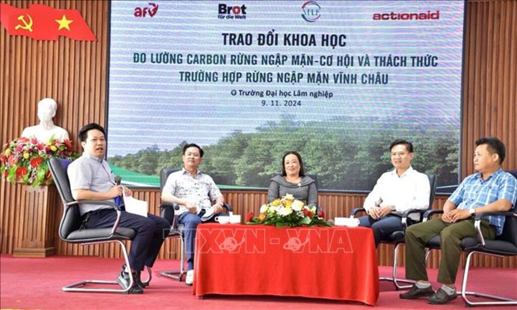 Thông tin trên được chia sẻ tại trao đổi khoa học “Đo lường carbon rừng ngập mặn - cơ hội và thách thức - trường hợp rừng ngập mặn Vĩnh Châu” diễn ra tại Trường Đại học Lâm nghiệp, Hà Nội ngày 9/11. Đại diện Cục Lâm nghiệp, Sở Nông nghiệp và Phát triển nông thôn, Chi cục Kiểm lâm Sóc Trăng và các địa phương có rừng ngập mặn ở khu vực phía Bắc cùng đông đảo nhà khoa học, cộng đồng và các tổ chức phi chính phủ hoạt động trong lĩnh vực bảo vệ rừng tham dự sự kiện.