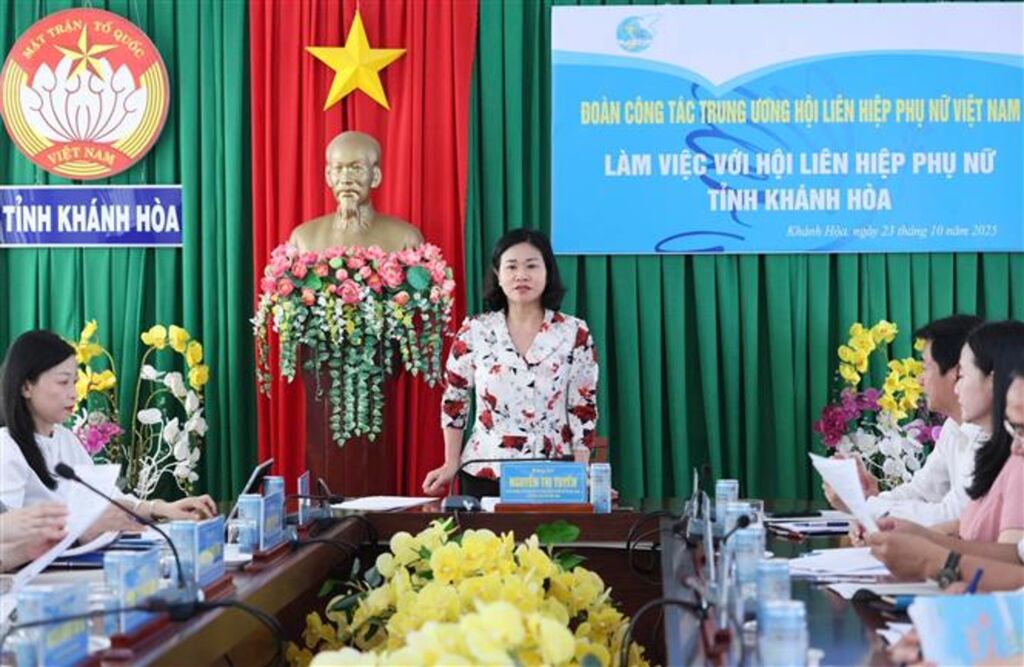 Chiều 23/10, tại phường Nha Trang, đoàn công tác của Trung ương Hội Liên hiệp Phụ nữ Việt Nam do bà Nguyễn Thị Tuyến, Chủ tịch Trung ương Hội làm trưởng đoàn đã làm việc với Hội Liên hiệp Phụ nữ Việt Nam tỉnh Khánh Hòa về các vấn đề hoạt động của Hội và kiểm tra, giám sát Dự án 8 về "Thực hiện bình đẳng giới và giải quyết những vấn đề cấp thiết đối với phụ nữ và trẻ em" năm 2025.