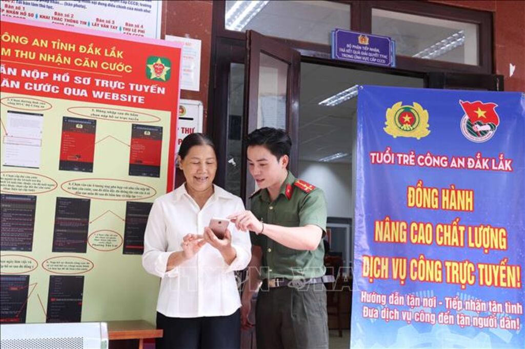Các đội hình thanh niên tình nguyện của Công an tỉnh Đắk Lắk tham gia phân luồng, hướng dẫn người dân thực hiện thủ tục hành chính theo quy trình; hỗ trợ người dân thực hiện thao tác cơ bản trên các thiết bị công cộng; cài đặt và sử dụng ứng dụng VNeID, tài khoản định danh điện tử; hỗ trợ người dân, doanh nghiệp, tổ chức, đơn vị thao tác khai báo, nộp báo cáo điện tử định kỳ, sử dụng nền tảng số chuyên ngành.