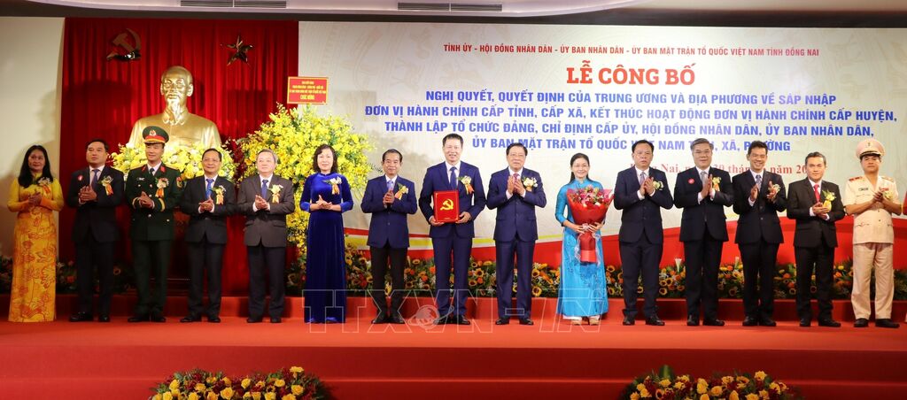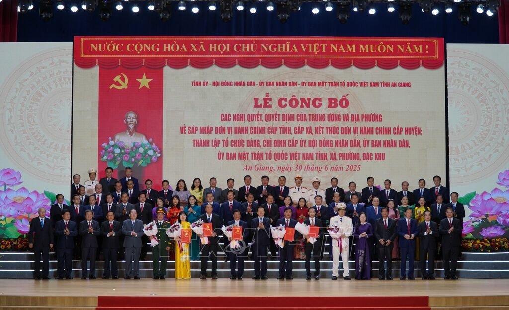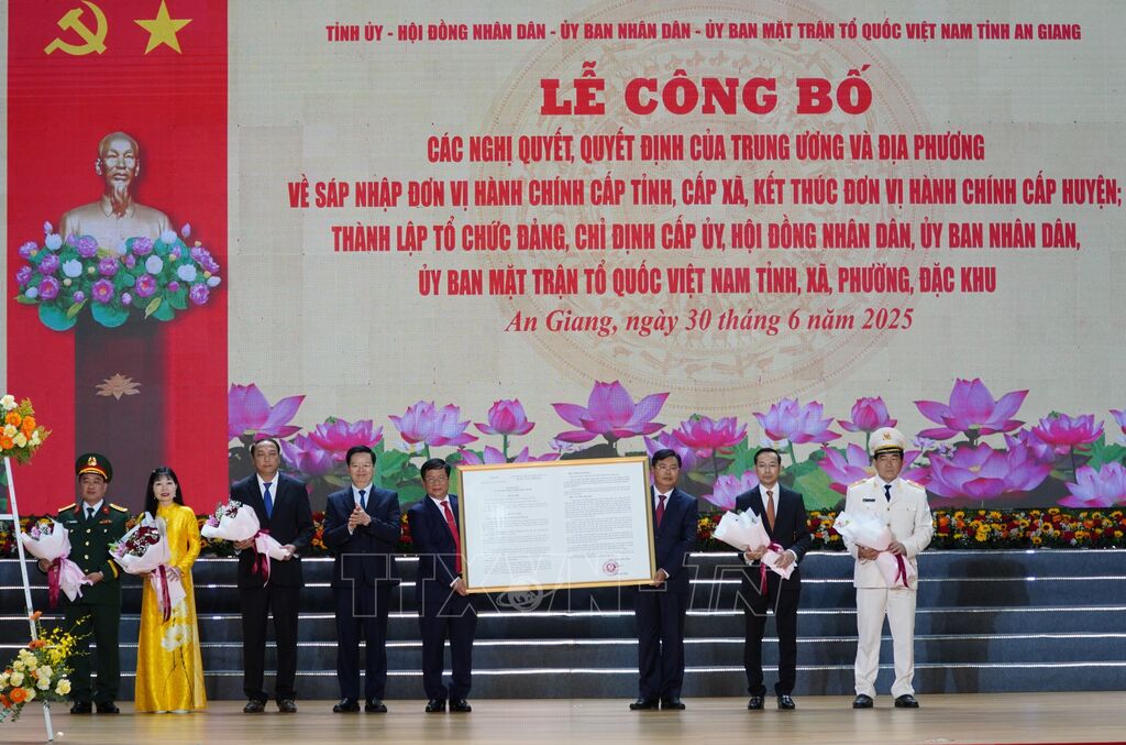 Sáng 30/6, tại các tỉnh Đồng Nai, Cà Mau, An Giang đã diễn ra lễ công bố các nghị quyết, quyết định về của Trung ương và địa phương về sắp xếp đơn vị hành chính cấp tỉnh, cấp xã; kết thúc hoạt động đơn vị hành chính cấp huyện; thành lập tổ chức đảng; chỉ định cấp ủy đảng, HĐND, UBND, Ủy ban MTTQ Việt Nam tỉnh, xã, phường.
