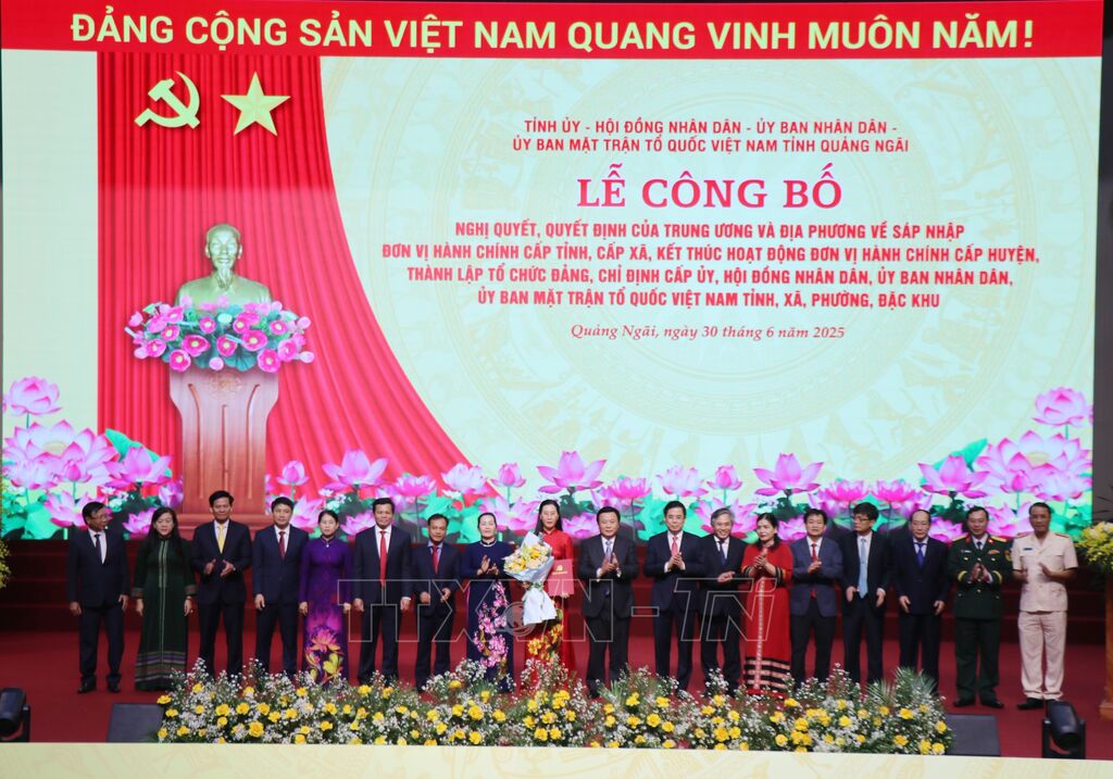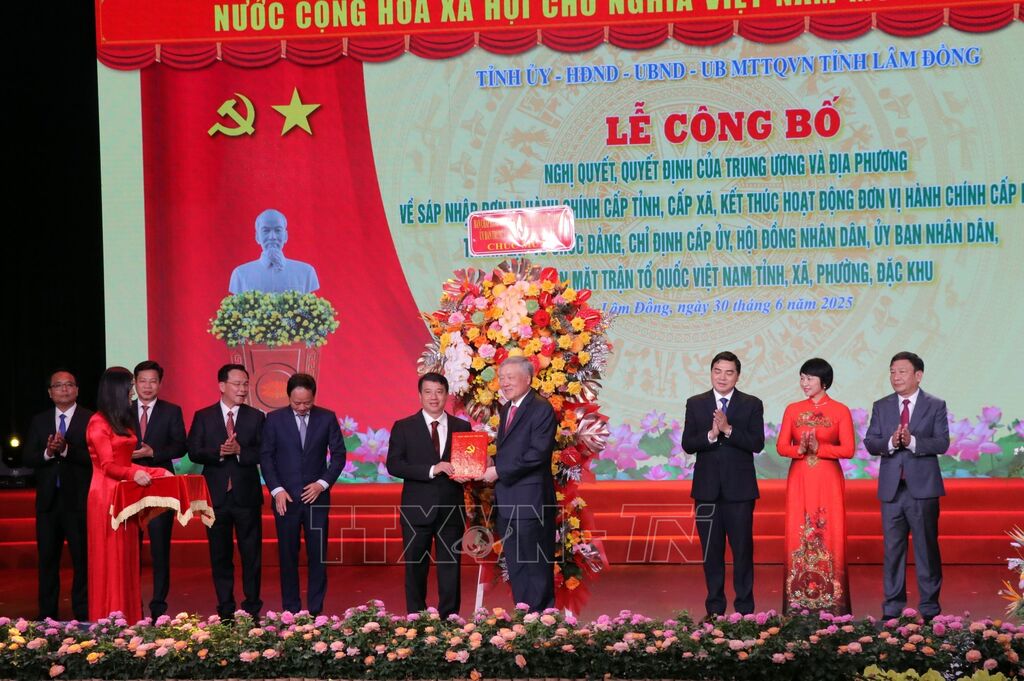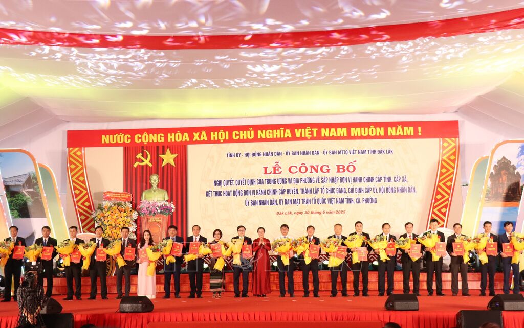 Ngày 30/6, các tỉnh Lâm Đồng, Quảng Ngãi, Đắk Lắk đã Lễ công bố các nghị quyết, quyết định của Trung ương và địa phương về sáp nhập đơn vị hành chính cấp tỉnh, cấp xã, thành lập tổ chức đảng, chỉ định cấp ủy, HĐND, UBND, MTTQ tỉnh, thành phố, xã, phường, đặc khu.