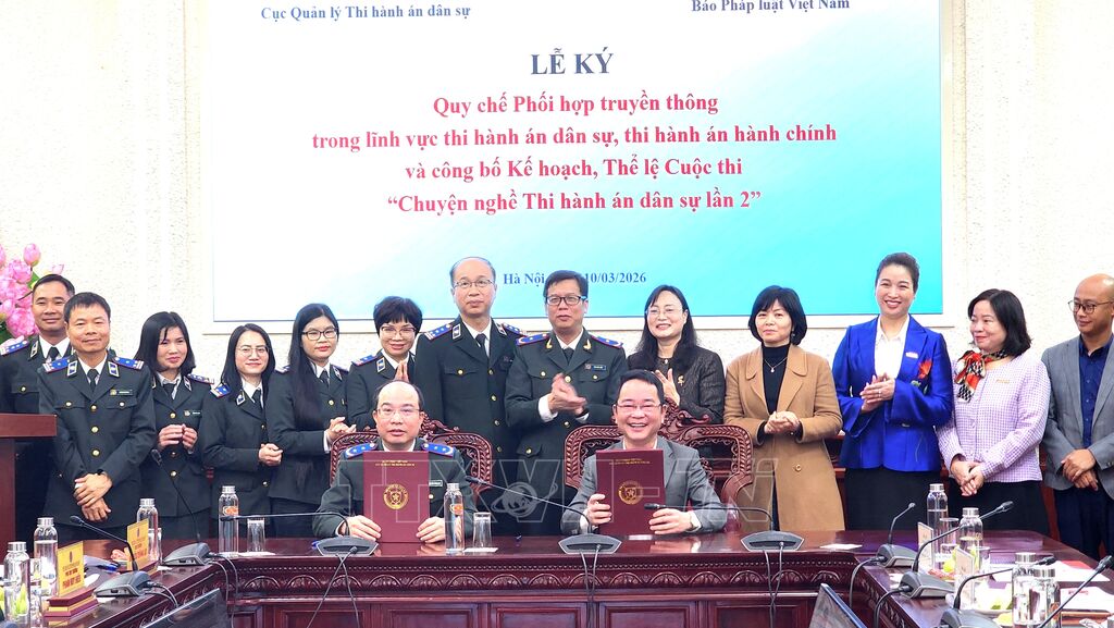 Sáng 10/3, Cục Quản lý Thi hành án dân sự (Bộ Tư pháp) và Báo Pháp luật Việt Nam tổ chức Lễ ký kết Quy chế phối hợp truyền thông trong lĩnh vực thi hành án dân sự, thi hành án hành chính và công bố Thể lệ cuộc thi “Chuyện nghề Thi hành án dân sự” lần thứ 2.