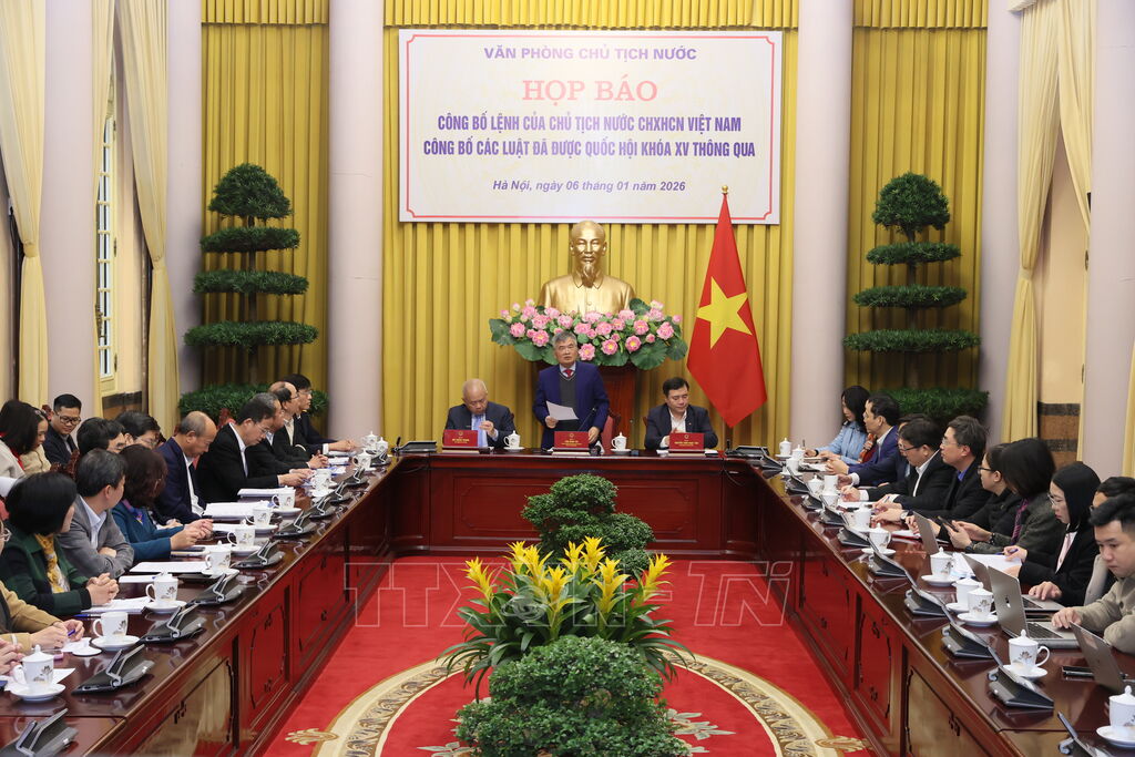 Sáng 6/1, tại Phủ Chủ tịch, Văn phòng Chủ tịch nước tổ chức họp báo công bố Lệnh của Chủ tịch nước về 12 luật đã được Kỳ họp thứ 10, Quốc hội XV thông qua, bao gồm: Luật Thuế thu nhập cá nhân; Luật Quản lý thuế; Luật sửa đổi, bổ sung một số điều của Luật Thuế giá trị gia tăng; Luật Tiết kiệm, chống lãng phí; Luật Quy hoạch; Luật Đầu tư; Luật Dự trữ quốc gia; Luật sửa đổi, bổ sung một số điều của Luật Quản lý nợ công; Luật sửa đổi, bổ sung một số điều của Luật Thống kê; Luật sửa đổi, bổ sung một số điều của Luật Giá; Luật Thương mại điện tử; Luật sửa đổi, bổ sung một số điều của Luật Kinh doanh bảo hiểm.