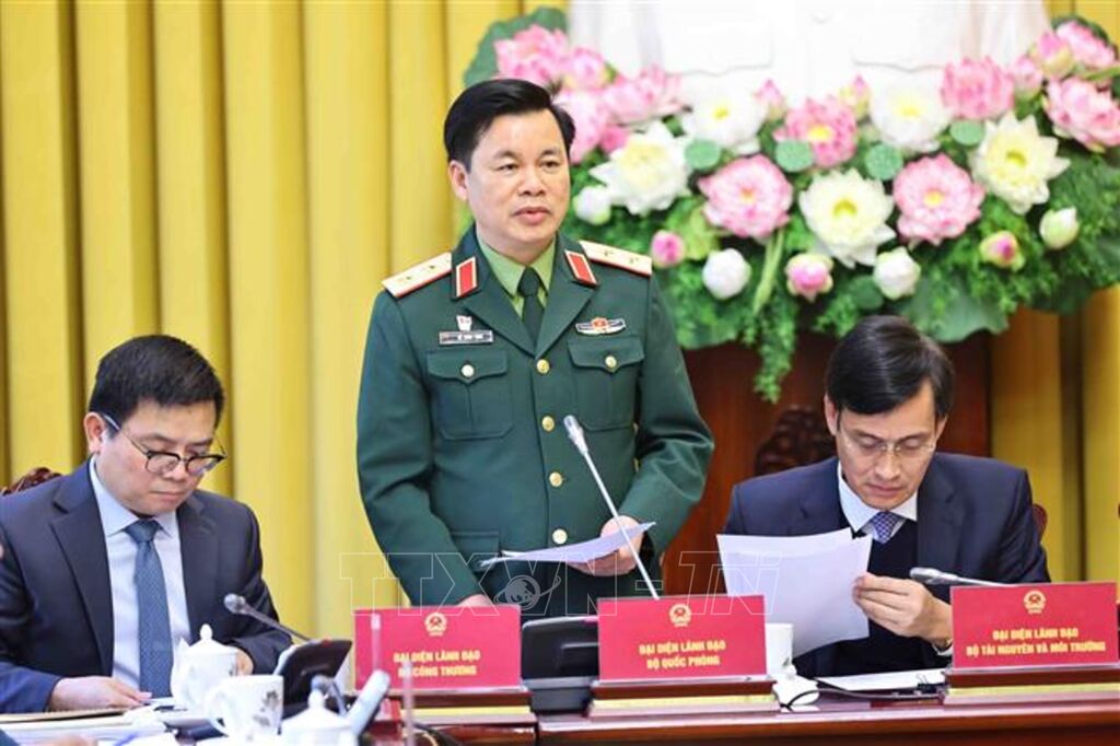 Bộ trưởng Bộ Tài nguyên và Môi trường Đỗ Đức Duy; lãnh đạo Bộ Quốc phòng, Bộ Kế hoạch và Đầu tư, Bộ Công Thương, Bộ Y tế, Văn phòng Quốc hội, Tòa án Nhân dân tối cao dự họp báo. Phó Chủ nhiệm Văn phòng Chủ tịch nước Phạm Thanh Hà chủ trì họp báo.