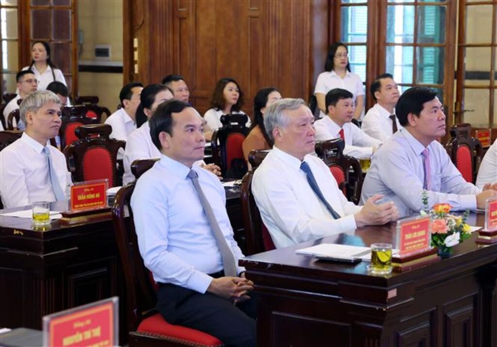 Ủy viên Bộ Chính trị, Bí thư Trung ương Đảng, Chánh án Tòa án nhân dân Tối cao Nguyễn Hòa Bình và Phó Thủ tướng Chính phủ Trần Lưu Quang dự buổi lễ.