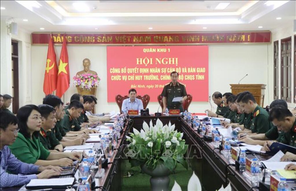 Chiều 20/4, tại tỉnh Bắc Ninh, Quân khu 1, Bộ Quốc Phòng tổ chức Hội nghị công bố quyết định về công tác cán bộ và bàn giao chức vụ Chỉ huy trưởng, Chính ủy Bộ Chỉ huy Quân sự tỉnh Bắc Ninh.