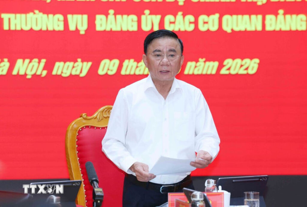 Sáng 9/3, tại Hà Nội, Ủy viên Bộ Chính trị, Bí thư Đảng ủy Quốc hội, Chủ tịch Quốc hội Trần Thanh Mẫn, Trưởng Đoàn Kiểm tra, giám sát của Bộ Chính trị, Ban Bí thư năm 2026 (Đoàn Kiểm tra, giám sát số 11) và Ủy viên Bộ Chính trị, Thường trực Ban Bí thư, Bí thư Đảng ủy các cơ quan Đảng Trung ương Trần Cẩm Tú, đồng chủ trì Hội nghị công bố quyết định kiểm tra, giám sát của Bộ Chính trị, Ban Bí thư và làm việc với Ban Thường vụ Đảng ủy các cơ quan Đảng Trung ương.