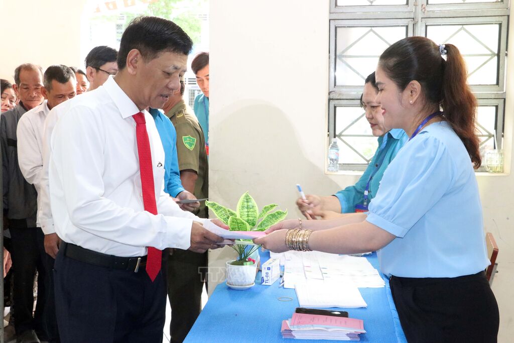 Đến 7 giờ sáng, những lá phiếu đầu tiên đã được cử tri bỏ vào hòm phiếu. Lượng cử tri đến khu vực bỏ phiếu ngày càng đông, gồm nhiều thành phần như cựu chiến binh, cán bộ hưu trí và các cử tri trẻ lần đầu tham gia bầu cử. Quy trình bỏ phiếu được triển khai đúng hướng dẫn: cử tri xuất trình thẻ cử tri, nhận phiếu bầu, nghiên cứu tiểu sử các ứng cử viên, vào buồng gạch phiếu và bỏ phiếu vào hòm phiếu theo quy định. Công tác bảo đảm an ninh trật tự được lực lượng chức năng triển khai nghiêm túc.