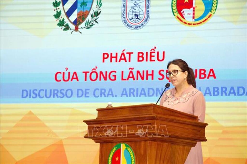 Cảm ơn Liên hiệp các tổ chức hữu nghị Thành phố Hồ Chí Minh đã phối hợp tổ chức buổi lễ đầy ý nghĩa để kỷ niệm một sự kiện có dấu ấn quan trọng trong lịch sử của Cuba, bà Ariadne Feo Labrada, Tổng lãnh sự Cộng hòa Cuba tại Thành phố Hồ Chí Minh nhấn mạnh, nhiều năm qua, Việt Nam và Cuba là hai nước anh em có mối quan hệ hữu nghị đặc biệt và độc đáo, là một tấm gương trong quan hệ quốc tế và một trong những lĩnh vực có liên quan nhất là lĩnh vực đoàn kết và ngoại giao nhân dân.