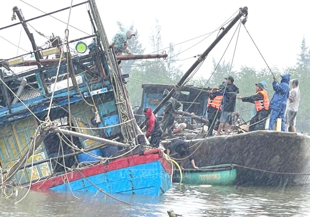 Cụ thể, lúc 8 giờ 30 phút cùng ngày, Đồn Biên phòng Triệu Vân nhận được tin báo, tại khu vực âu trú tránh bão thuộc thôn Phú Hội, xã Nam Cửa Việt, tàu cá của ông Nguyễn Văn Phước (sinh năm 1972, trú xã Nam Cửa Việt, tỉnh Quảng Trị) bị ngắt thiết bị bơm nước tự động, nước tràn vào khiến tàu bị chìm nửa thân.