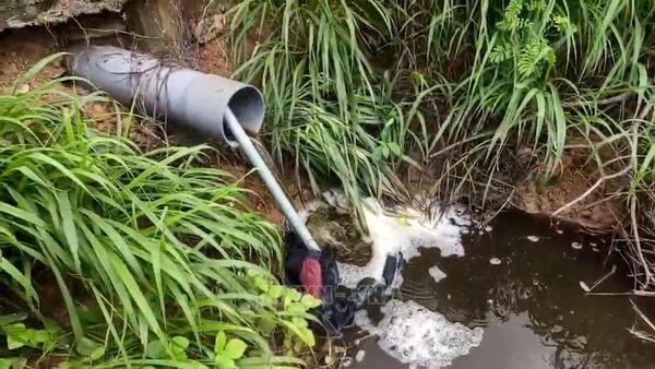 Theo quan sát của phóng viên ngày 25/10/2024 tại khu dân cư, phía sau khu xử lý nước thải của Trung tâm Y tế quận Sơn Trà, nguồn nước thải chảy lộ thiên ra ngoài, không có che đậy và chảy nhập vào dòng nước mương phía sau làm cho dòng nước đen ngòm, đóng váng từng mảng đen dưới đáy. Mùi hôi thối bốc lên nồng nặc, trộn lẫn mùi hóa chất lan rộng cả khu vực dân cư.