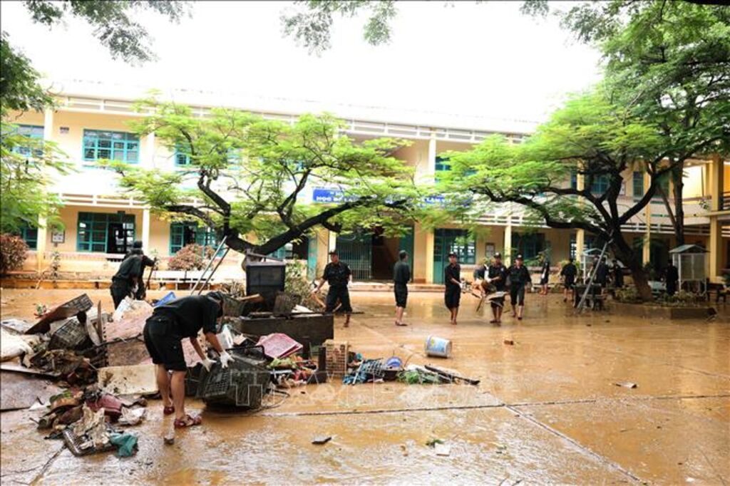 Nhiều lực lượng được huy động để dọn dẹp sau lũ, trong đó ưu tiên dọn dẹp tại các trường học để sớm đưa học sinh quay trở lại trường, không để gián đoạn công tác dạy và học của các em.