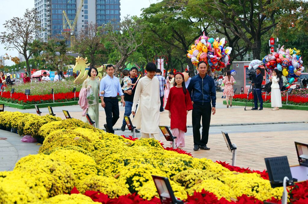 Ngay từ sáng sớm những ngày đầu năm, đường hoa Xuân Bạch Đằng dọc bờ sông Hàn thơ mộng đã thu hút hàng nghìn lượt người dân và du khách đến tham quan, chụp ảnh lưu niệm. Không gian được đầu tư trang trí công phu với hàng trăm loài hoa khoe sắc, kết hợp các tiểu cảnh nghệ thuật mang đậm dấu ấn văn hóa, tạo nên bức tranh Xuân sinh động giữa lòng đô thị trẻ.
