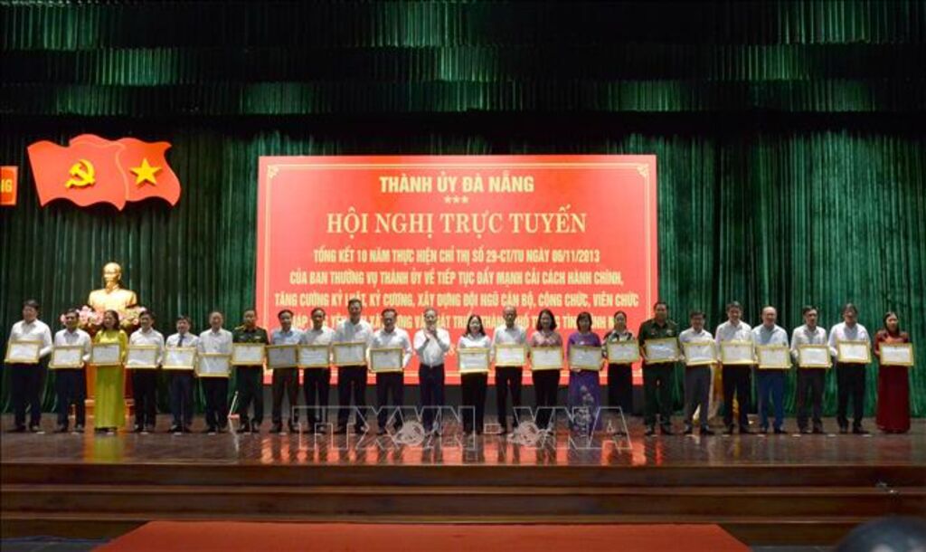 TTXVN - Ngày 28/9, Ban Thường vụ Thành ủy Đà Nẵng đã tổ chức Hội nghị trực tuyến tổng kết 10 năm thực hiện Chỉ thị số 29-CT/TU ngày 6/11/2013 của Ban Thường vụ Thành ủy về tiếp tục đẩy mạnh cải cách hành chính, tăng cường kỷ luật, kỷ cương, xây dựng đội ngũ cán bộ, công chức, viên chức đáp ứng yêu cầu xây dựng và phát triển thành phố trong tình hình mới.