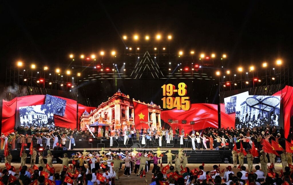Tối 9/8, Quân ủy Trung ương, Bộ Quốc phòng chủ trì, phối hợp với Thành ủy Hà Nội, Thành ủy Huế và Thành ủy Thành phố Hồ Chí Minh tổ chức chương trình chính luận nghệ thuật “Dưới cờ vinh quang”.