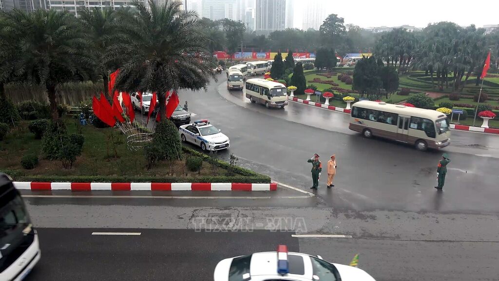 Sớm 20/1, dù trời mưa nhẹ, công tác bảo đảm trật tự, an toàn giao thông tại Thủ đô được đặt ở mức ưu tiên cao nhất, với các chốt kiểm soát quanh những tuyến đường dẫn về Trung tâm Hội nghị Quốc gia (phường Từ Liêm, Hà Nội). Toàn lực lượng Công an thành phố được yêu cầu không để xảy ra tình huống đột xuất, bất ngờ, không để gián đoạn dù chỉ trong thời gian ngắn. Trên cơ sở đó, Công an thành phố Hà Nội đã triển khai đồng bộ nhiều giải pháp hiện đại, trong đó nổi bật là việc Phòng Cảnh sát giao thông ứng dụng hệ thống camera trí tuệ nhân tạo kích hoạt “làn sóng xanh” phục vụ công tác dẫn đoàn, bảo vệ các đoàn đại biểu.