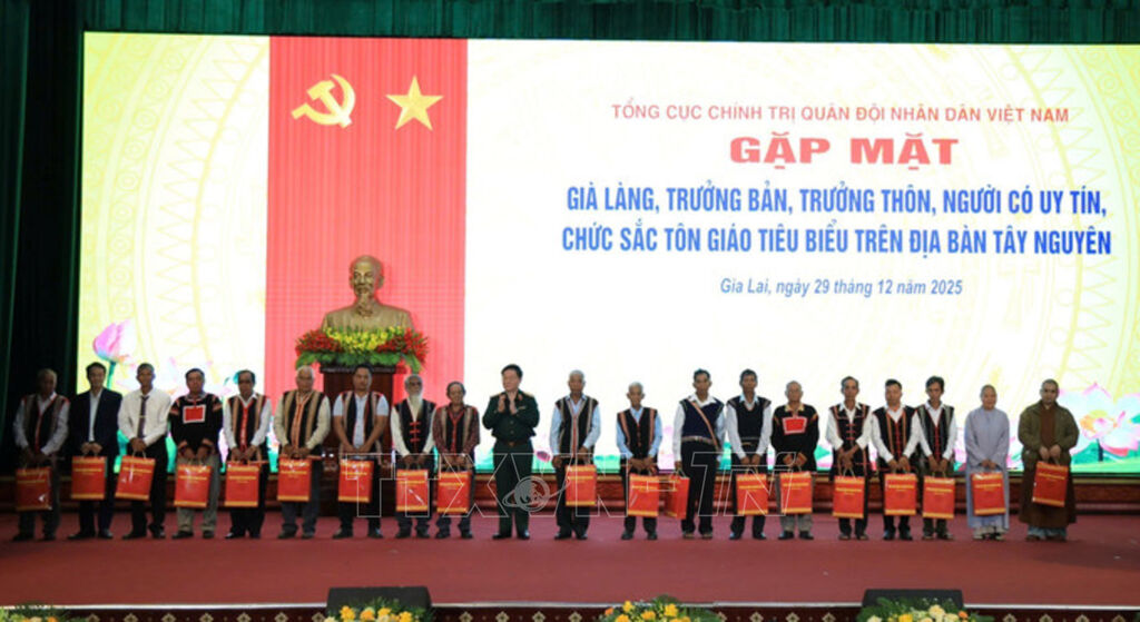 Ngày 29/12, tại Nhà Văn hóa Binh đoàn 15 (tỉnh Gia Lai), Tổng cục Chính trị Quân đội nhân dân Việt Nam tổ chức gặp mặt 100 già làng, trưởng thôn, người có uy tín và chức sắc tôn giáo tiêu biểu khu vực Tây Nguyên. Đại tướng Nguyễn Trọng Nghĩa, Ủy viên Bộ Chính trị, Chủ nhiệm Tổng cục Chính trị Quân đội nhân dân Việt Nam dự và chủ trì buổi gặp mặt.