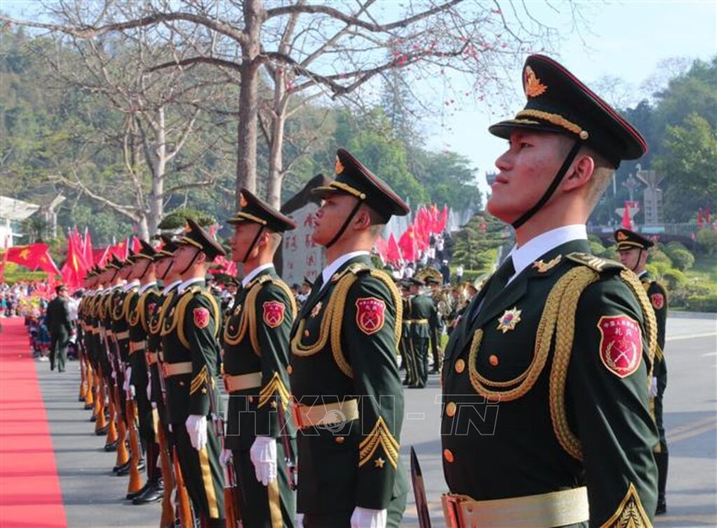 Lễ đón chính thức đoàn đại biểu cấp cao Bộ Quốc phòng Việt Nam diễn ra trang trọng tại khu vực Cửa khẩu Hữu Nghị Quan (Trung Quốc).