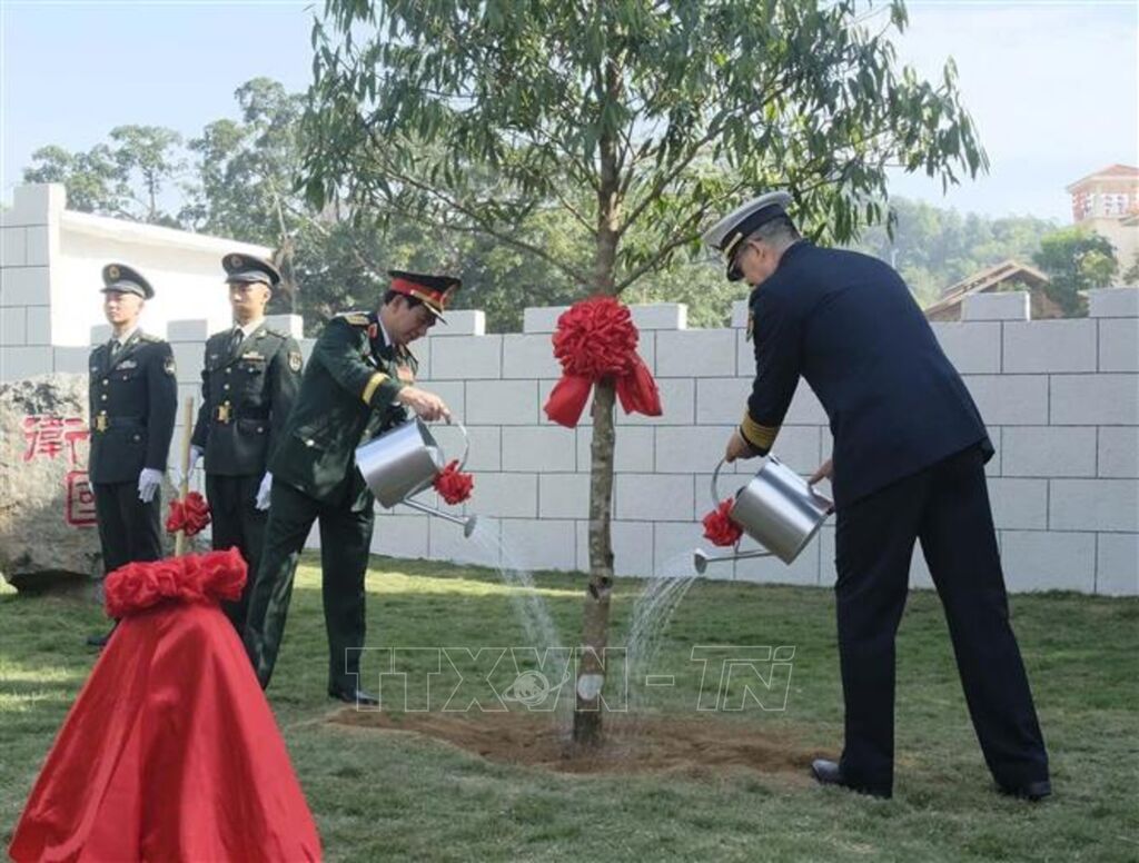 Nhân dịp này, Bộ trưởng Phan Văn Giang và Bộ trưởng Đổng Quân đã chụp ảnh lưu niệm cùng cán bộ, chiến sĩ Đại đội Biên phòng Cửa khẩu Hữu Nghị Quan, trồng cây lưu niệm tại khuôn viên đơn vị, gửi gắm thông điệp về tình hữu nghị Việt - Trung bền vững, cùng phát triển trong tương lai.