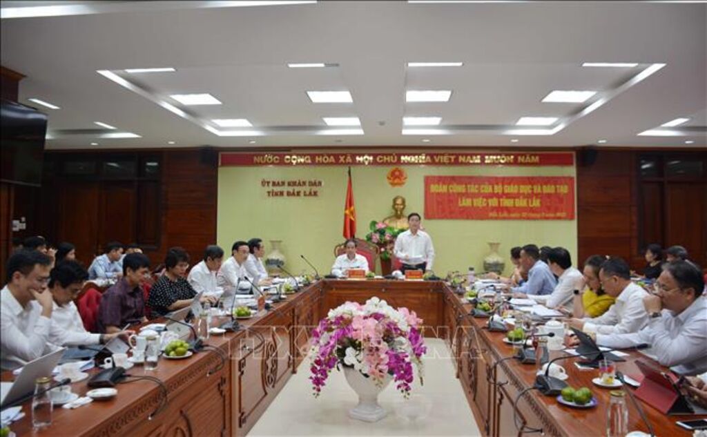 Báo cáo tại buổi làm việc, Phó Chủ tịch Ủy ban nhân dân tỉnh Đắk Lắk H’Yim Kđoh cho biết, toàn tỉnh hiện có 36.154 cán bộ, giáo viên và nhân viên công tác trong ngành Giáo dục. Quy mô học sinh, các loại hình trường lớp phát triển ổn định, đa dạng, phù hợp với điều kiện thực tế. Đến nay, 100% thôn, buôn có trường lớp mầm non độc lập; 100% xã, phường có trường tiểu học, trung học cơ sở độc lập; mỗi huyện, thị xã có 2 trường trung học phổ thông trở lên; 100% huyện, thị xã, thành phố có trường phổ thông dân tộc nội trú cấp trung học cơ sở…