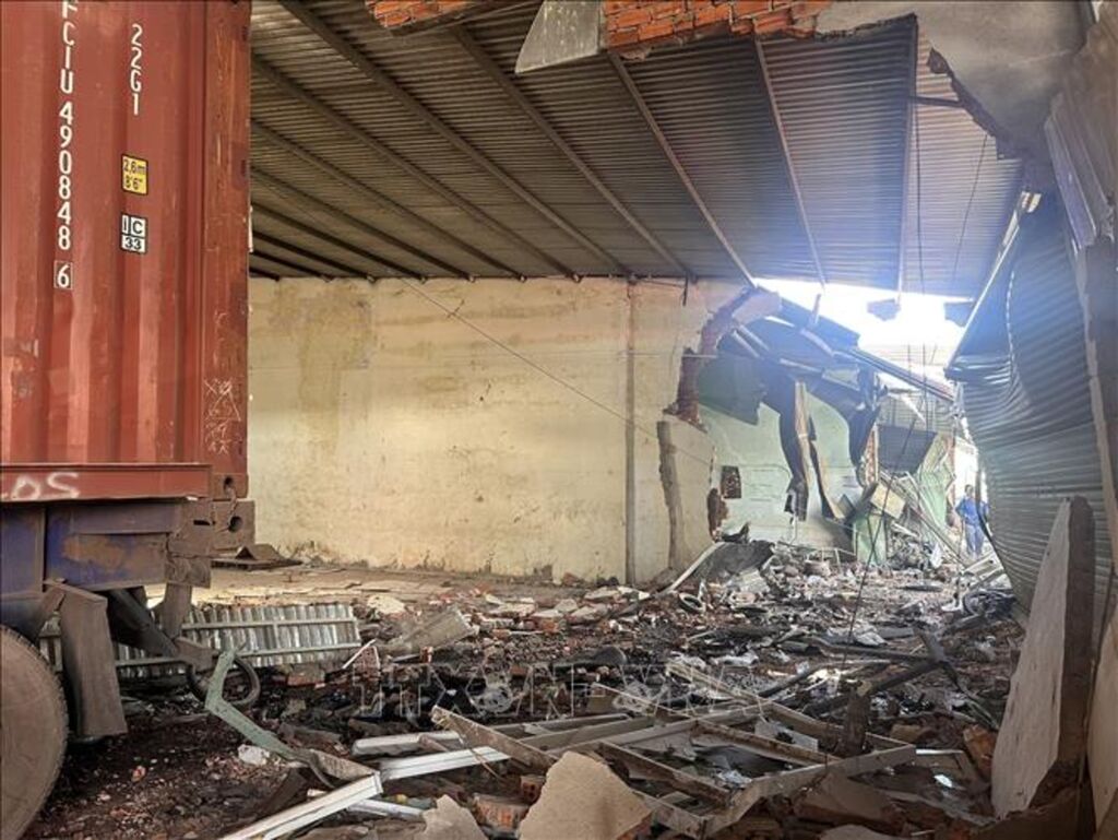 Xe container bất ngờ lao lên vỉa hè và tông vào 2 nhà dân làm 2 người tử vong tại chỗ và nhiều người khác bị thương.