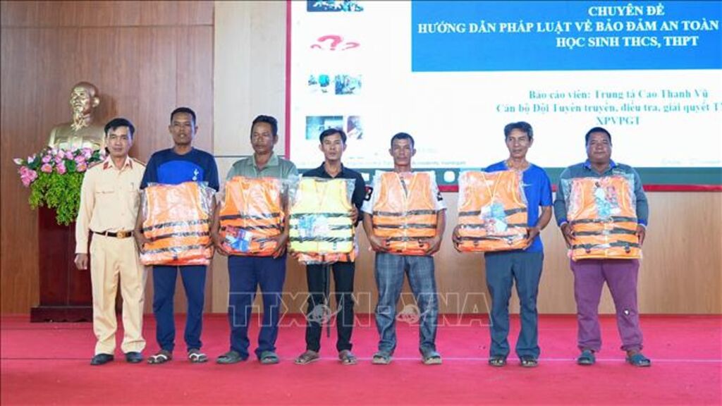 Tại buổi tuyên truyền pháp luật về an toàn giao thông đường thủy nội địa, Phòng Cảnh sát giao thông Công an tỉnh Tây Ninh đã cấp phát hơn 100 áo phao miễn phí cho học sinh và người dân sinh sống trên lưu vực sông Vàm Cỏ Đông và lưu vực hồ Dầu Tiếng, góp phần nâng cao ý thức phòng ngừa tai nạn giao thông đường thuỷ, bảo đảm an toàn tính mạng học sinh và người dân vùng sông nước/.