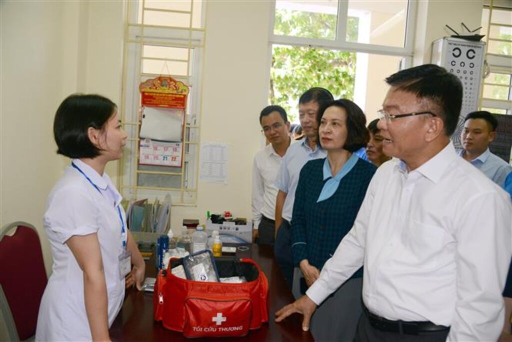 Tại điểm thi Trường Trung học phổ thông Hòn Gai (thành phố Hạ Long), Đoàn công tác kiểm tra các điều kiện cơ sở vật chất, phòng thi, khu vực bảo quản đề thi, phòng y tế… và động viên các thầy cô, các lực lượng làm công tác hỗ trợ thi.