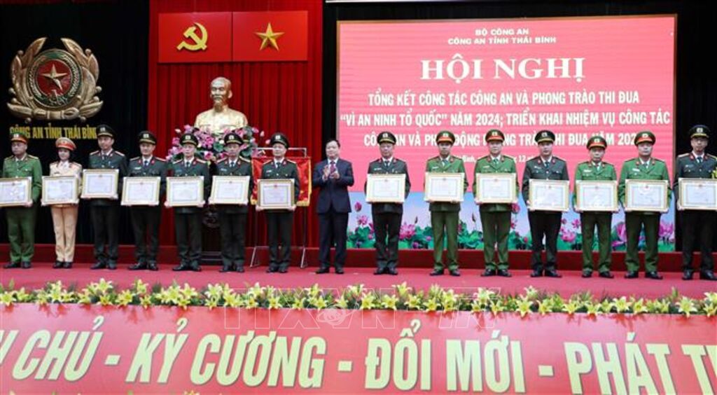 Tại hội nghị, thừa ủy quyền của Chủ tịch nước, Trung tướng Lê Văn Tuyến, Thứ trưởng Bộ Công an đã trao Huân Chương bảo vệ Tổ quốc hạng Ba cho 2 cá nhân, trao Cờ Thi đua của Bộ Công an cho 11 tập thể; Bộ Công An, UBND tỉnh Thái Bình trao Bằng khen 45 cho tập thể, cá nhân có thành tích xuất sắc.