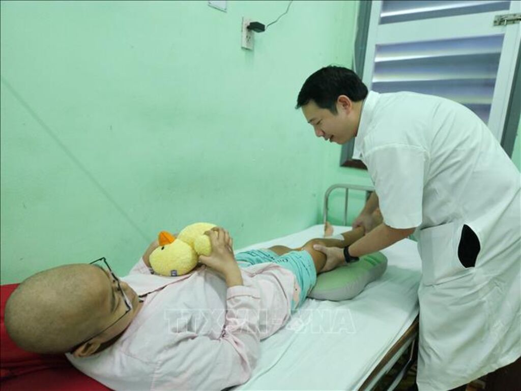 Chỉ vài tháng trước, em từng đứng trước nguy cơ phải cắt bỏ toàn bộ chân vì mắc sarcoma xương ác tính. Sau ba đợt hóa trị, phương án cắt cụt chi được đặt ra. Đó là quãng thời gian khủng hoảng khi đứa trẻ phải chấp nhận nguy cơ mất đi một phần cơ thể để giành lại sự sống.